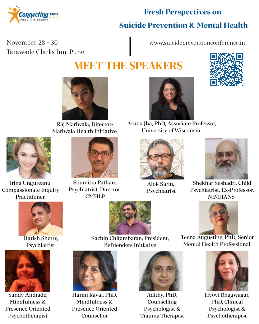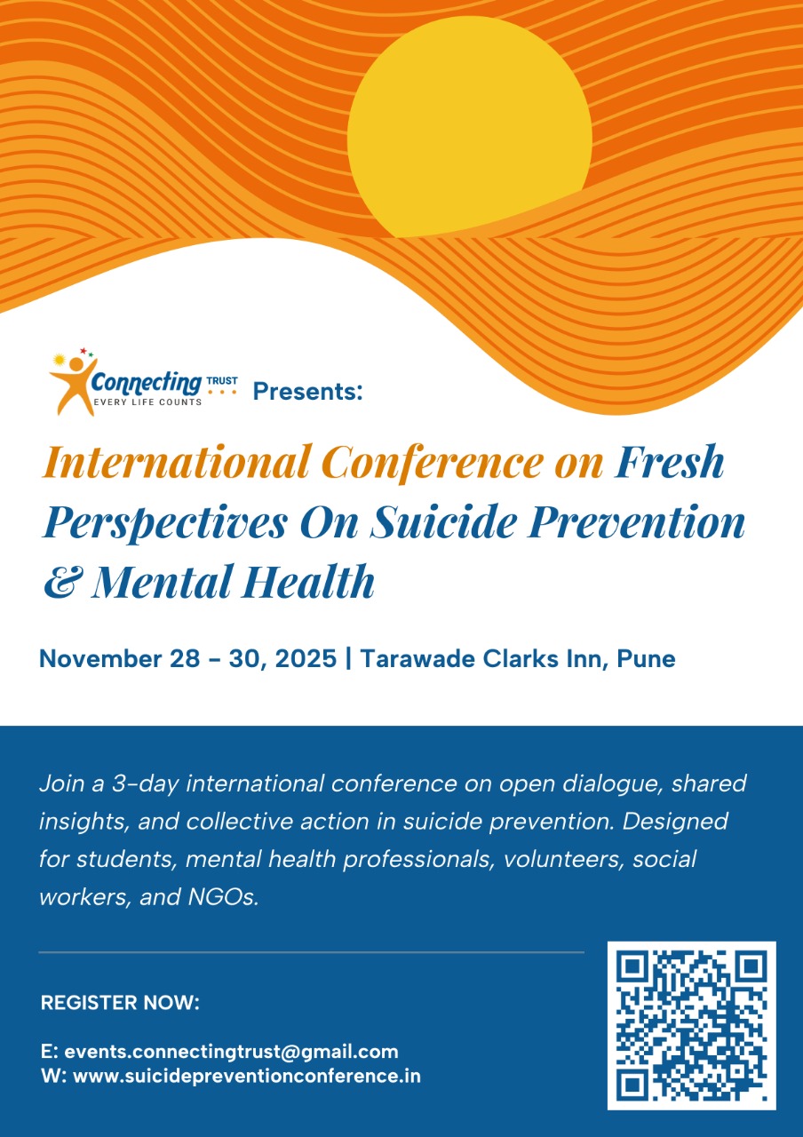 Connecting Trust is hosting an International Conference 'What are we Missing? Fresh Perspectives in Suicide Prevention and Mental Health' from 28th to 30th November, 2025. The 3-day Conference is focused on open dialogue, shared insights and collective action in suicide prevention. For more details and to register: www.suicidepreventionconference.in